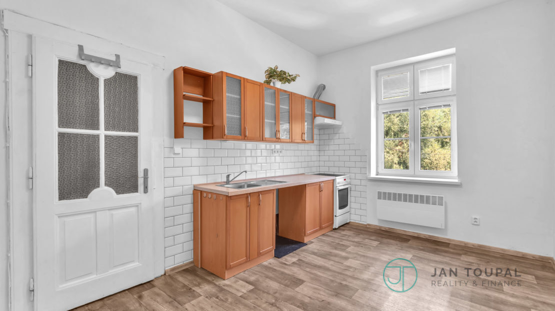 Dispozičně se byt skládá z chodby, koupelny s vanou a toaletou, obývací pokoj s kuchyní, samostatný velký pokoj, pavlače, velká kóje na půdě a venkovní kůlna pro Vaše věci. Výměra bytu je 43m².